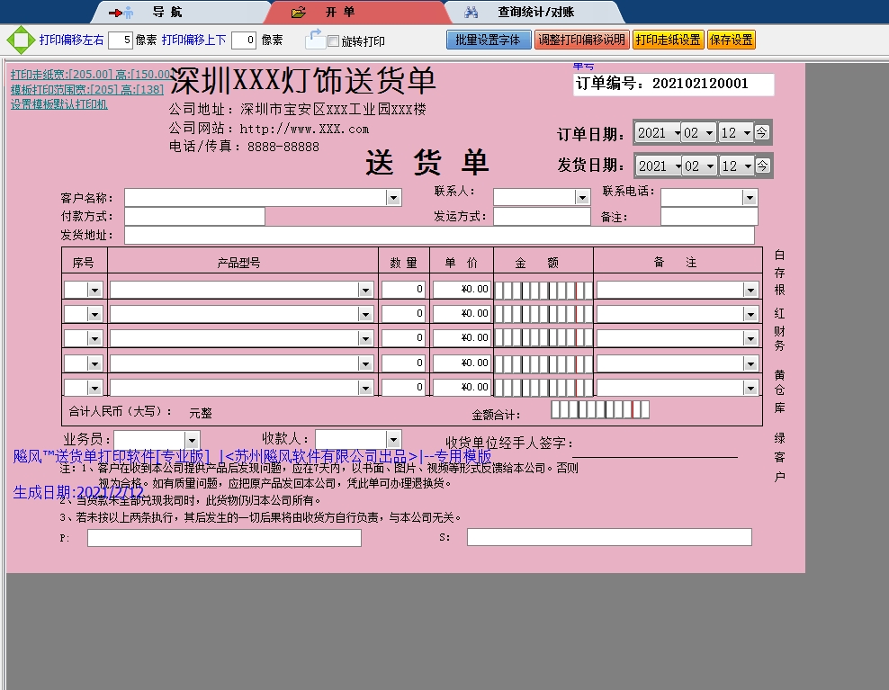 采用开放式结构设计,可根据送货单打印格式、单价及总价合计方式创建模板。